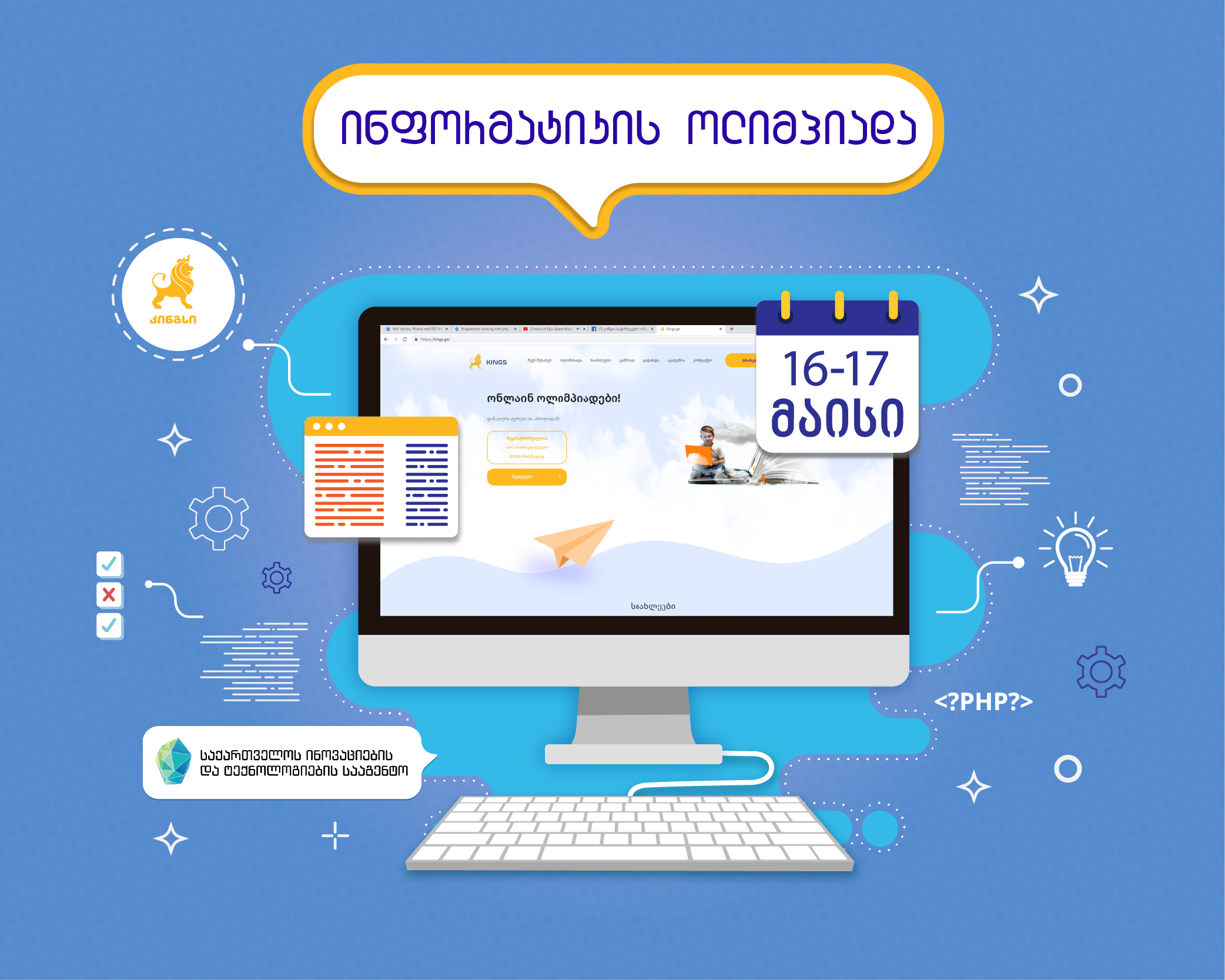 საქართველოს ინოვაციების და ტექნოლოგიების სააგენტოს მხარდაჭერით „კინგსი საქართველო“ წარმოგიდგენთ პირველ ინფორმატიკის ოლიმპიადას, რომელიც ონლაინ რეჟიმში ჩატარდება.