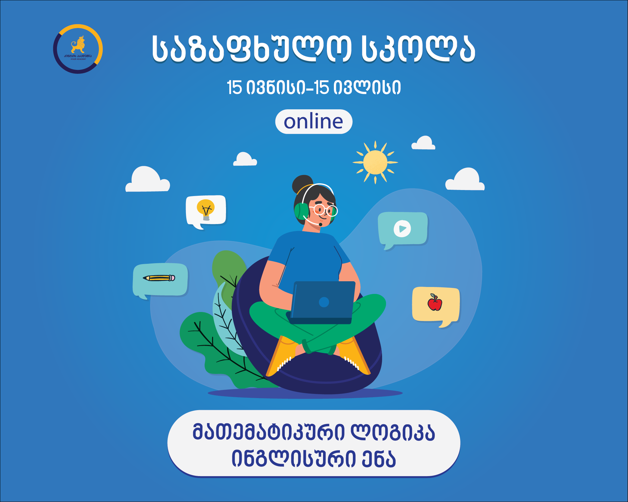 კინგსის აკადემია, წელს პირველად, გთავაზობთ ონლაინ კურსებს, რათა სახლიდან გაუსვლელადაც კი, ჩვენმა პატარებმა მოახერხონ და განაგრძონ გონებრივი ზრდა, არ ჩამორჩნენ გასული სემესტრის მასალას და მომზადებულები შეხვდნენ ახალ სემესტრს!