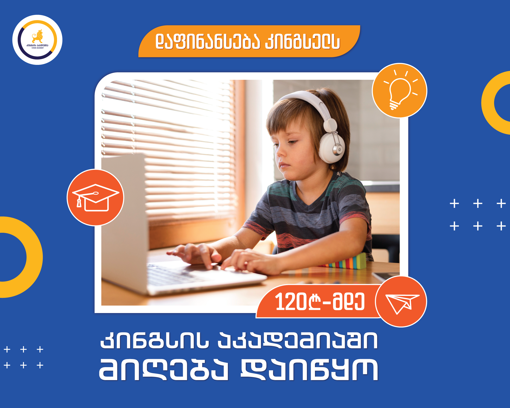 გვსურს გაცნობოთ, რომ 2021 წლის გაზაფხულის სემესტრში თოთოეულ კინგსელს „კინგსის აკადემია“ ციფრული მარკეტინგის კურსზე სწავლის საფასურს 90 ლარით, ხოლო სხვა კურსებზე 120 ლარით დაუფინანსებს!
