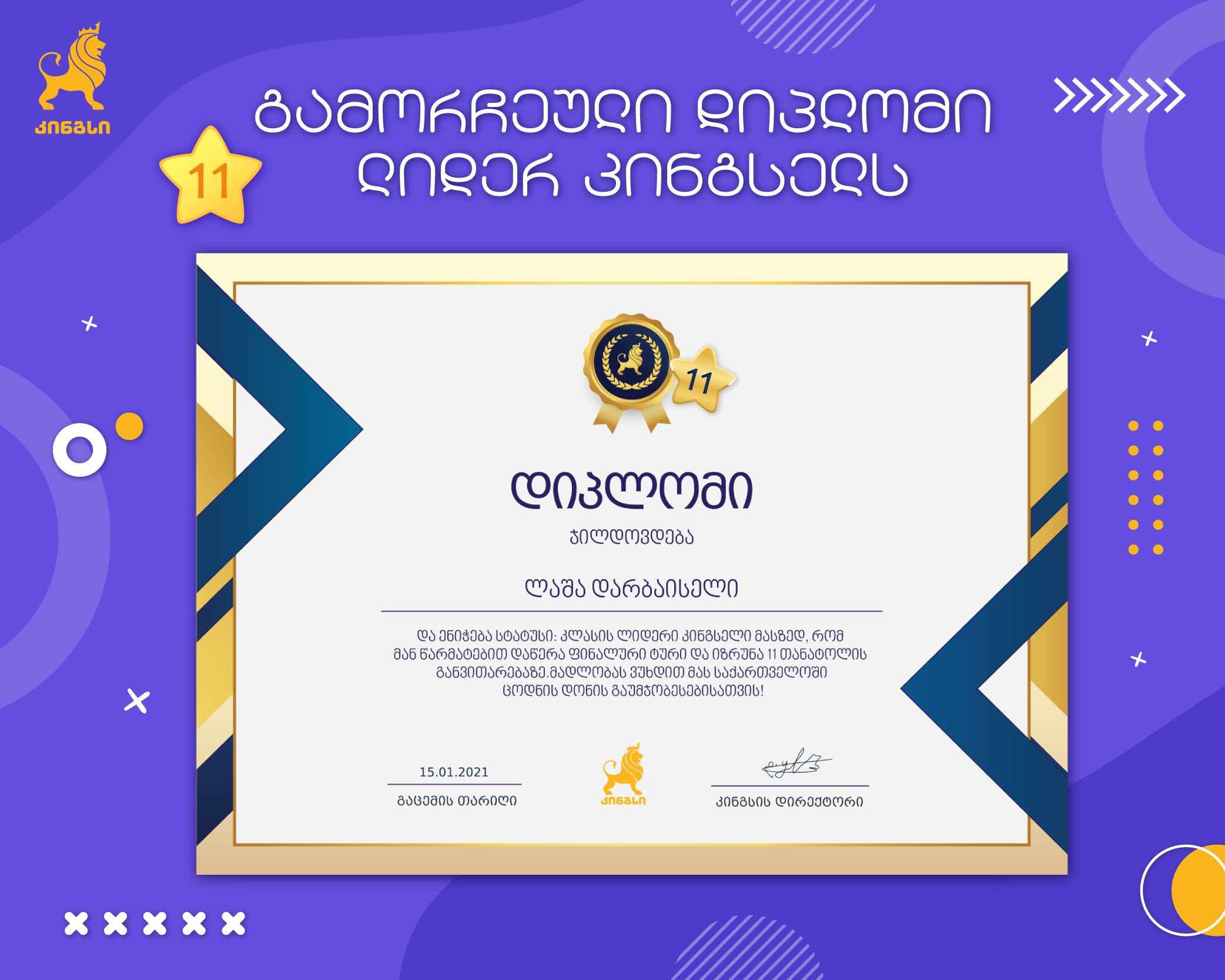 გამორჩეული დიპლომით დაასაჩუქროს.