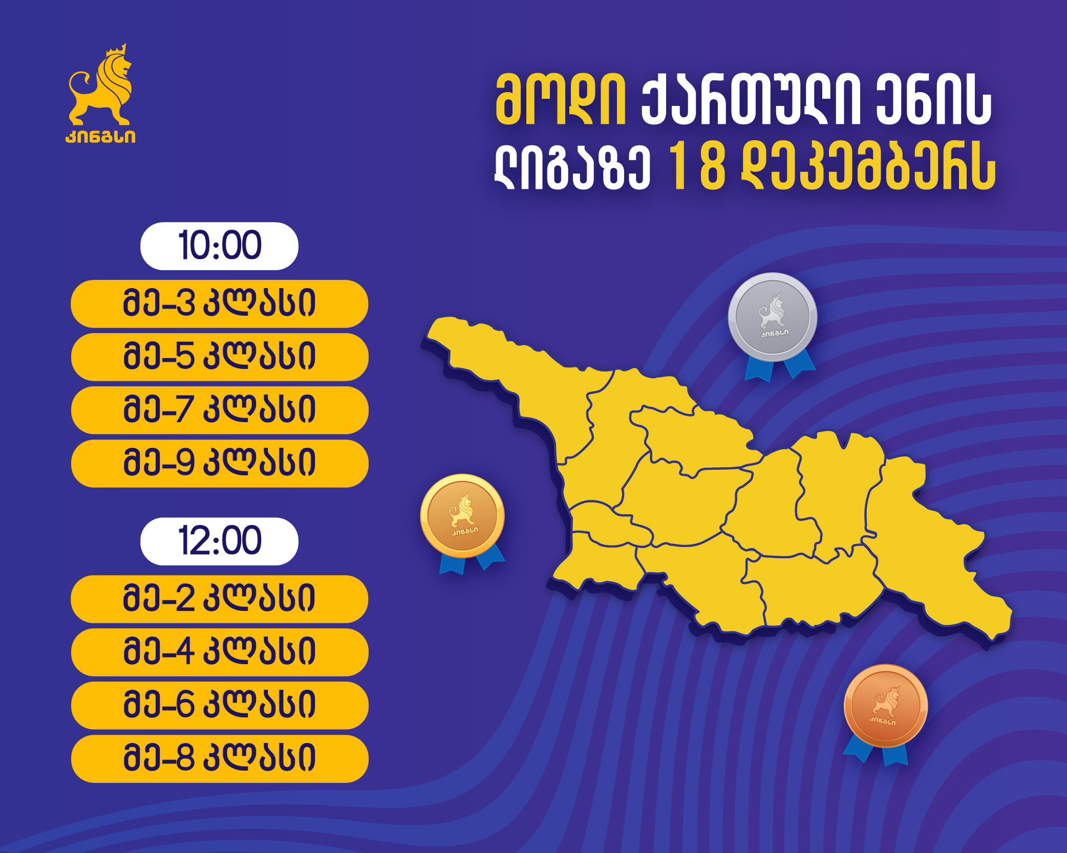 10:00 სთ: მე-3 კლასი, მე-5 კლასი, მე-7 კლასი,მე-9 კლასი